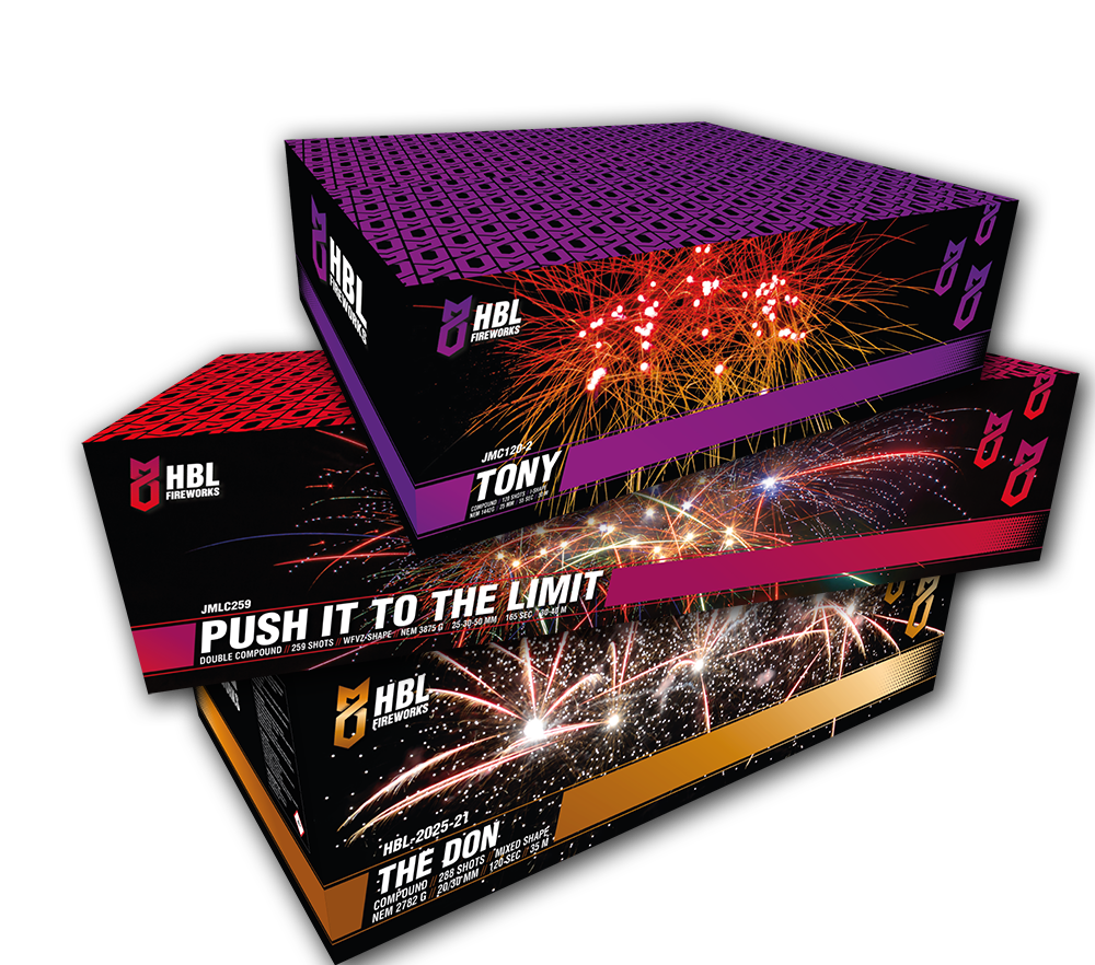 Samen goed voor bijna 800 shots, variatie in shapes, tempo’s, mines, salutes en kalibers tot 30mm. Van diepe kleuren tot gouden regens en fluiters – dit pakket heeft alles.